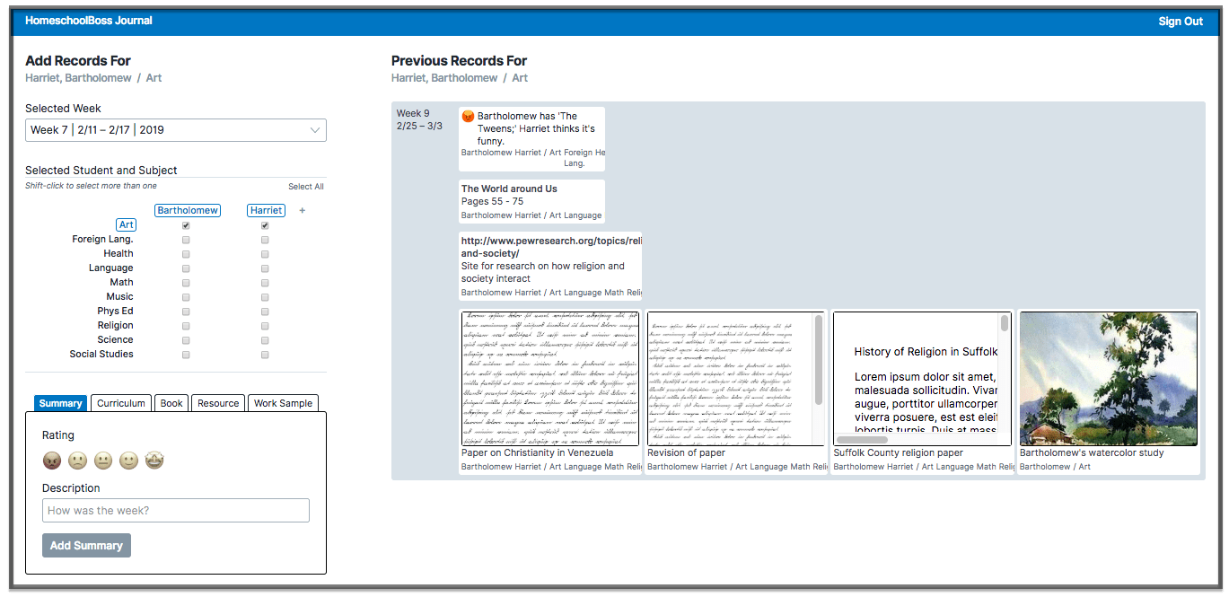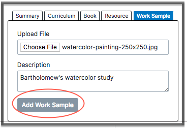 - At HomeSchool Boss Journal, input a description of the work sample.