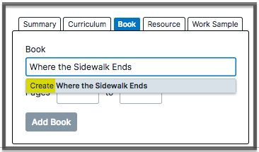 If your students used a book or books this week, select the book tab.