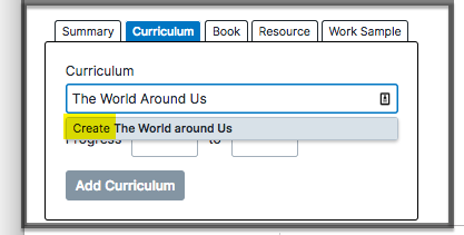 TIP: if you have never inputted the name of this week’s curriculum before, you will see an option drop down that reads ‘Create.’ Select ‘Create [name of curriculum].