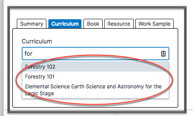 TIP: if you have already inputted a specific curriculum, a dropdown will show you a list of curricula you have already used that contain the text you typed, and you may select it. This helps to speed you up and prevent duplicates.