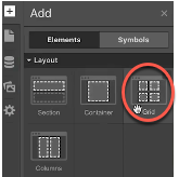 You can add a grid to nearly everything in Webflow. Drag ‘Grid’ from the elements panel into your canvas, or select ‘Grid’ from a section or div block menu. Webflow creates a 4X4 grid to help you get started.